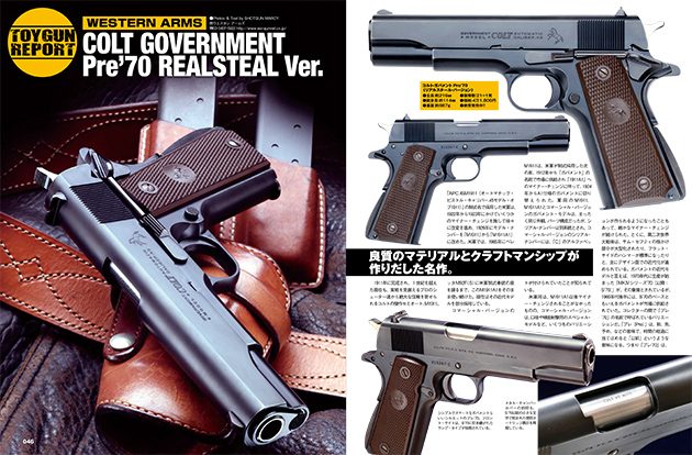 - 今月紹介するニューモデル2機種! まずは「ガバメント・プレ’70・リアルスチールVer.」。1960年代後半に製作されたガバメントを、高い技術と巧みなテクニックで、実銃そのままのムードに仕上げたコレクターズアイテムだ。その堂々たる存在感は、ガバ好きならずとも手にしたくなるはず! もう1機種は、人気の戦闘用センチュリオンを、さらに実践的な視点でマイナーチェンジした「M92FSエリート・センチュリオン」。米軍タイプのM9A1とコンパクトなセンチュリオンを融合し、さらに豪華なカスタムパーツを追加して、強かで魅力的なCQBカスタムに仕上げてベレッタファンに提供。こちらもまたウエスタンアームズならではの迫力ある仕上がりとなっています!