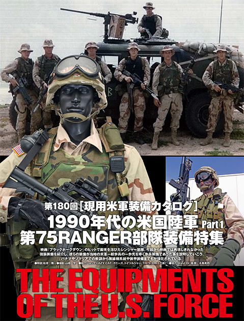第180回を迎えた「現用米軍装備カタログ」は1990年代の米国陸軍第75RANGER部隊装備特集 part1。映画『ブラックホークダウン』のヒットで脚光を浴びたレンジャー部隊の映画では再現しきれなかった強襲装備を細部まで徹底紹介。目から鱗の新情報満載! 米軍装備マニア必見です!