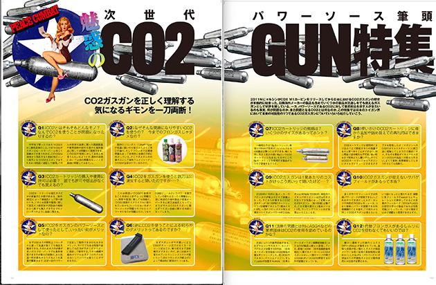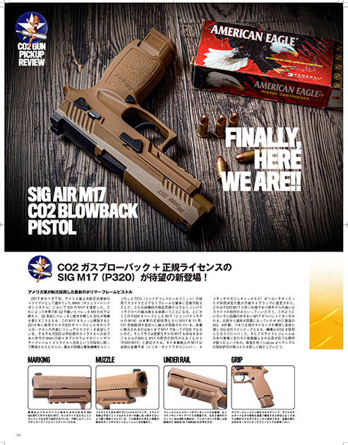 続いて2特ですが、今年2回目のCO2銃 特集です。前回に引き続き、業界の六法全書 タニコバ社長とDUKEさんの濃厚インタビュー&最新モデルのカタログです。まだまだすべての人が納得している状態ではないと思われるCO2銃ですが、臭いものに蓋をするではなく、無知こそ最大の脅威と考え、徹底的に掘った内容となります。LAYLAXさんから来年頭に発売されるSIG M17 のCO2など目玉商品もどしどしレビューしてます。