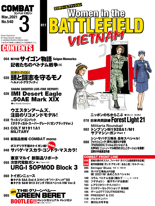 今月は久しぶりのイラスト表紙&巻頭特集でM.Kelly氏がMEGAハッスル! 衰えることのない筆力でベトナム戦争で活躍した女性兵士を描きます!