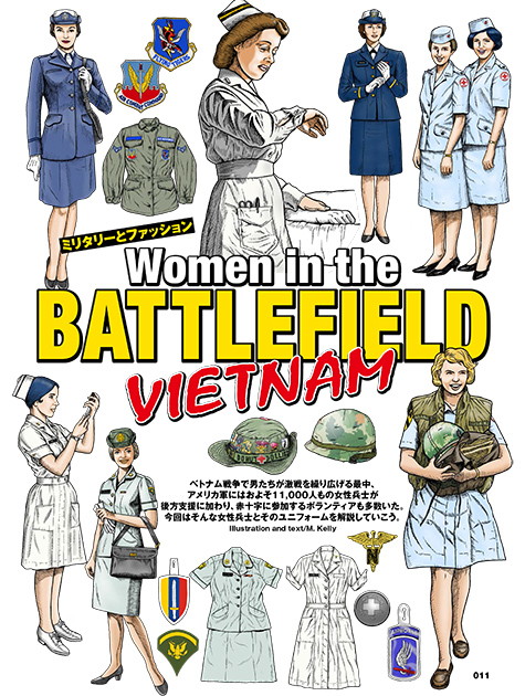 ●M.Kellyの筆が小粋に踊る人気連載を、今月は巻頭増ページスペシャルでお届けします! テーマはベトナム戦争で活躍した女性兵士とそのユニフォーム。陸海空はもちろん、ボランティアの赤十字スタッフまで、激戦続くベトナム戦争を様々な角度から支えていた強き女たちの物語は必読です! カラーページならではの迫力をご堪能下さい!