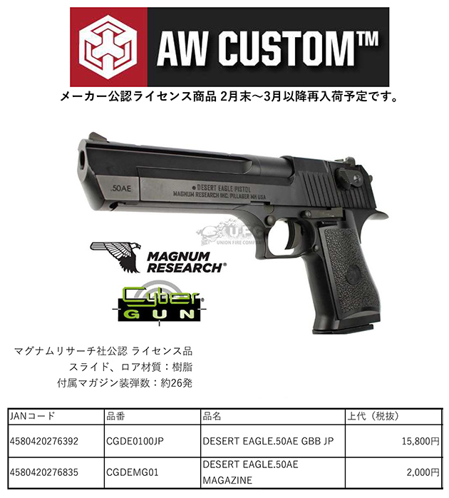 AW CUSTOM デザートイーグル GBB が2021年2~3月に再販予定。