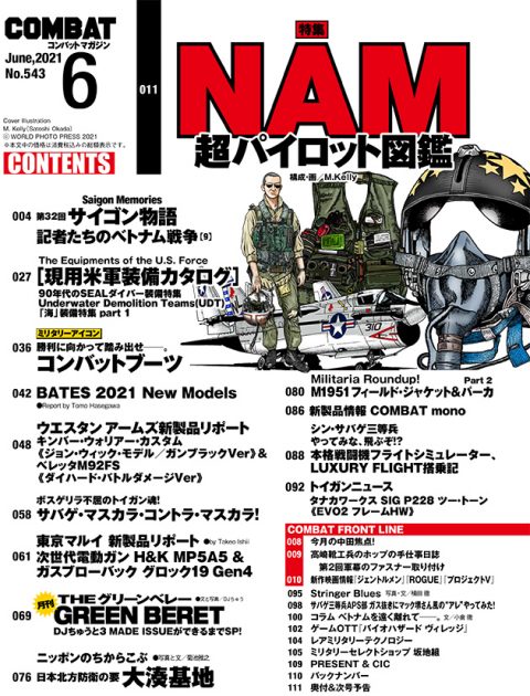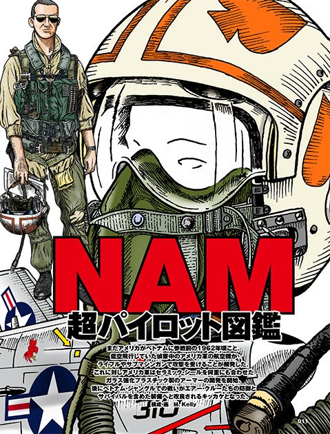 ●特集は「NAM 超パイロット図鑑」。お馴染みのいつだってターボ全開のイラストレーター、M.Kelly氏(好きな飲み物はコーラとビール!)の筆が激しく踊るぶっ飛び特集! アメリカ空軍・海軍・海兵隊からVNAF、VPAFまで、ベトナム戦争時、命懸けで空を飛んだパイロット達の装備を、緻密なイラストでご紹介。思わず見入る、NAM戦マニア永久保存の特集です!