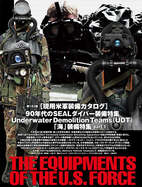 ●今月は「海」装備特集! 第二次世界大戦中に創設された、米国海軍水中破壊工作部隊(UDT)。朝鮮戦争・ベトナム戦争を経て、エリート戦術部隊へと認められるようになっていった彼らの主な任務は、上陸を妨害する障害物や敵艦船の偵察、そして水中破壊だ。今回から1990年代のSEALダイバー装備をじっくり特集! SEALファン必見の内容です!
