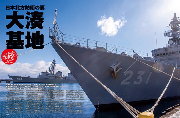 ●本州最北の青森県。その最北にある、むつ市にある海上自衛隊大湊基地。基地の外からも見ることのできる岸壁には「あぶくま」型など特徴ある護衛艦が勢ぞろい。