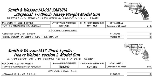 スミスアンドウェッソン M37 2インチ ジェイポリス ヘビーウェイト バージョン2 モデルガン
