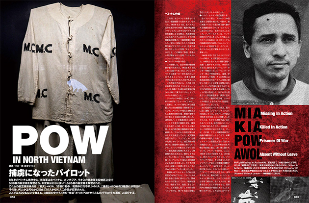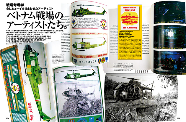 - ベトナムに送り込まれた戦ったアメリカ人の中に、アートで戦争を記録した人達がいる――。今号ではツアー時と帰郷してからの間にナム戦を象徴するアイテムのひとつであるヘリコプターを描いたベン M.ケネディ氏と、1967年に北ベトナム上空で武装偵察飛行中に撃墜され捕虜になったジョン・M・マグラス海軍少佐が、鮮明な記憶をもとに捕虜収容所での“この世の地獄”を描いたスケッチ集を紹介。戦場を生き抜いた男たちが描く力強いアートがここにある!