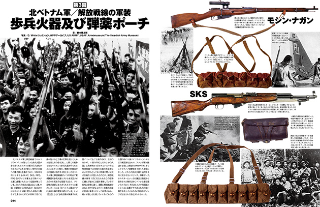 - 北ベトナム軍と解放戦線で使用されていた歩兵火器及び弾薬ポーチを詳細に解説。複数の同盟国からの援助に依存する形となった北ベトナム軍と解放戦線が、いつの時点で東側陣営の歩兵火器システムを充足させたのかを知るのは容易ではないが、様々な資料を読み解き、北ベトナム軍と解放戦線の武器実情に迫る、マニア必見、資料性抜群のリポートです!