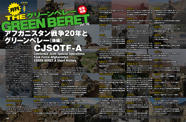 - 前号に引き続き、アフガニスタン戦争の20年を振り返る企画の後編をお届け。2021年8月30日。アメリカ、バイデン大統領はアフガニスタンからの米軍完全撤退に伴い、20年続いたアフガンでの戦いの終了を宣言。しかし、アフガンのほぼ全域を支配下に置いたタリバンの再興によって、現在のアフガニスタンは混迷を極めている……。米軍が介入した20年とは何だったのか? グリーンベレーを主軸にこの20年間を振り返る特別企画!