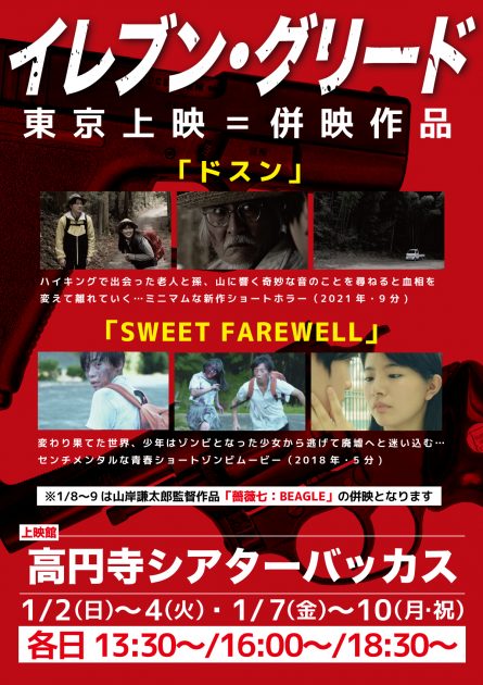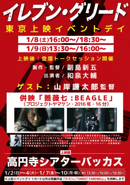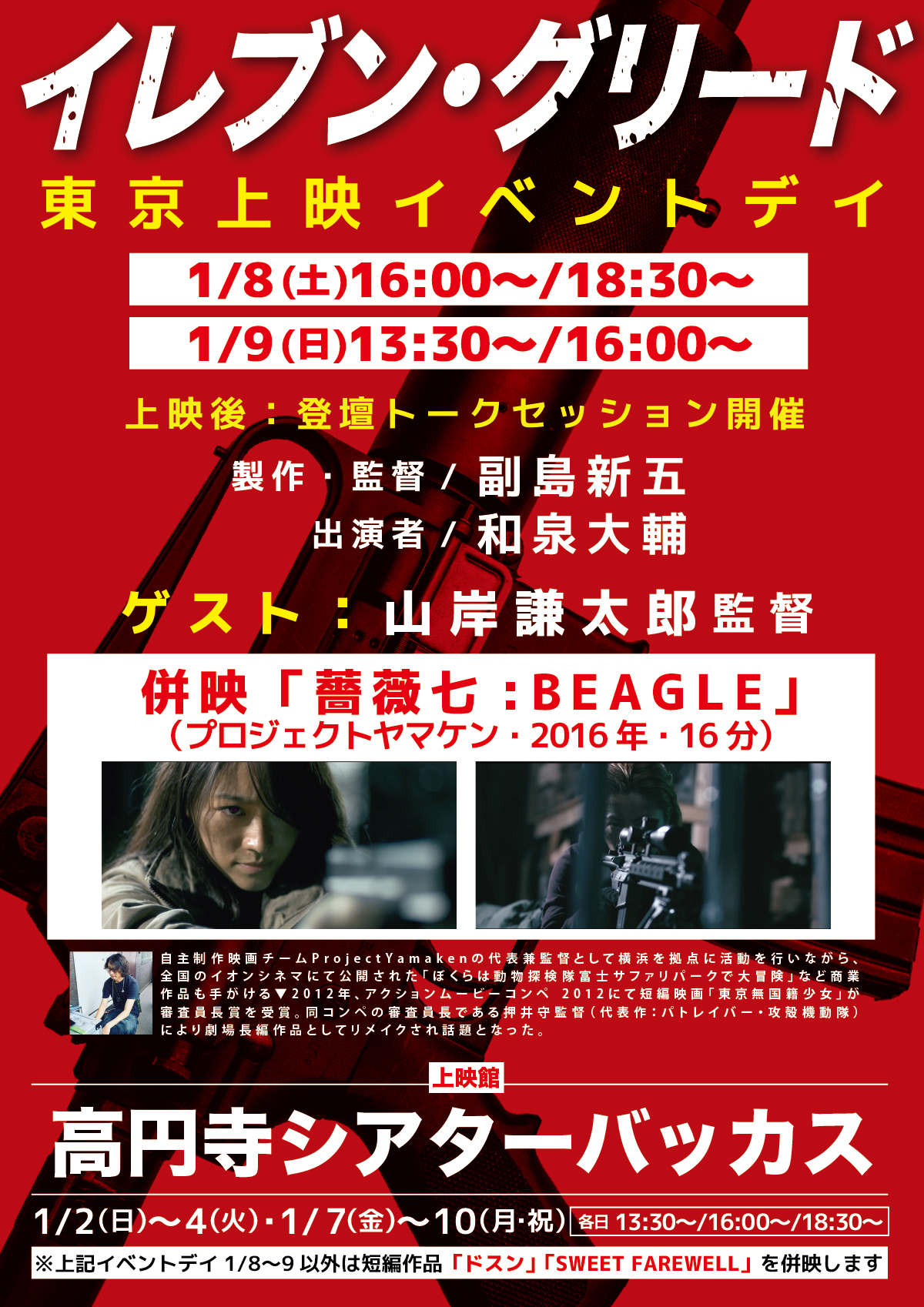 映画『イレブン・グリード』東京上映決定! 2021.12.20 映画 ソエジマックス監督の長編映画『イレブン・グリード』の東京上映が決定! 1/8、9のイベントデーにはヤマケンこと山岸健太郎監督とのトークも開催。 「イレブン・グリード」公式サイト https://www.11greed.com/ 関連リンク2021年11月17日 映画「イレブン・グリード」あのソエジマックスが監督する長編映画!!2016年4月28日 静岡ホビーショー、東京マルイからのメッセージを解く!2014年7月28日 soezimaxが監督する大阪★春夏秋冬のガンアクションが凄い!!2022年1月27日 SATマガジン 2022年3月号発売!