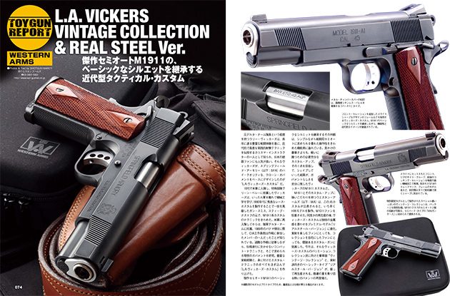 ●傑作セミオートM1911のベーシックなシルエットを継承するその外観は、シンプルながら戦闘用セミオートに求められる優れた操作性をきわめた機能美に溢れている「L.A.ヴィッカーズ・カスタム」。今月は、そんなヴィッカーズ・カスタムのバリエーション、コレクション派に向けた豪華版“ヴィンテージ・コレクション”と、実射派向きのベーシック・タイプ“リアルスチール・バージョン”が、揃って再生産! その魅力を徹底紹介!