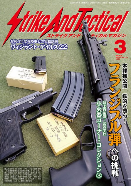 陸上自衛隊ではまだ珍しいフランジブル弾を使用した近接射撃競技会の訓練に密着。フランジブル弾とは弾頭に鉛を使用せず金属粉を固めたものに変更することによって、鉛中毒を防ぐ以外に、必要以上な貫通力・跳弾の危険性が減り、閉所での戦闘において安全に射撃することが出来る、未来の訓練弾といえよう。撮影:浅香昌宏