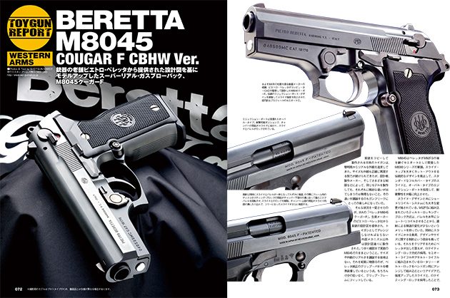 ●ウエスタン アームズの人気モデルのひとつ“ベレッタM8045クーガーF”。今月再生産されるのは、素材の質感を活かしたマット気味の曲面と、やや光を反射するスライド・サイドが、強かなセミオートのムードを醸し出す、スタンダード・ラインのCBHWバージョン。ベレッタ・オリジナルの設計図に従って製作され、トイガンとして内部メカニズムをアレンジした同社のM8045はトイガン史に残る名作のひとつ。この機会にぜひコレクションに加えよう!