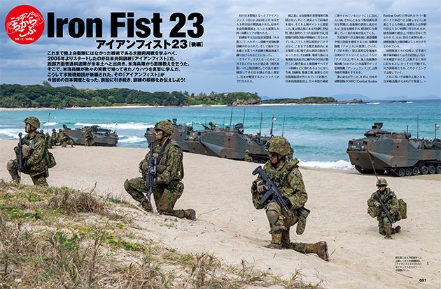 ●これまで陸上自衛隊にはなかった戦術である水陸両用戦を学ぶべく、2005年にスタートした日米共同訓練「アイアンフィスト」。西部方面普通科連隊が米本土へと出向き、米海兵隊から直接学び、彼らが数々の実戦で培ってきたノウハウを真摯に受け取ってきた。こうして水陸機動団が新編され「アイアンフィスト」が今回初めて日本で行なわれた。前回に引き続き、訓練の模様をお伝えします!