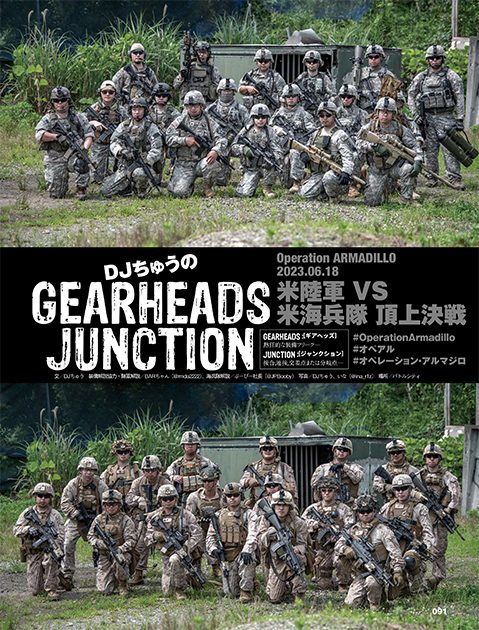 今回のギアヘッズジャンクションは「陸軍と海兵隊のレギュラー部隊」に熱狂するギアヘッズ達にズームイン! 陸軍と海兵隊がガチンコでサバゲするイベント『オペレーション・アルマジロ』へ、DJちゅうが参戦! 実は奥深いレギュラー部隊の装備の世界をご紹介します!