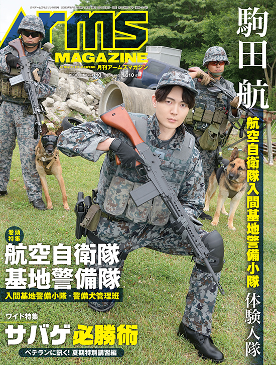 巻頭特集は航空自衛隊・入間基地の警備小隊と警備犬管理班です。声優・駒田航さんによる入間基地警備小隊への体験入隊特別企画が実現。本物の戦闘服や装備を着用してのガンハンドリング、K9警備犬を交えた不審者対処訓練、大型輸送機C-2を背にした撮影など、数々の貴重なシーンを捉えることができました。さらに、入間基地の警備小隊と警備犬管理班を徹底取材。彼らの任務や装備についてインタビューを交えながら解説するとともに、主要な銃器(64式小銃、9mm機関拳銃、9mm拳銃、5.56mm機関銃MINIMI)についてもピックアップ。警備隊員や警備犬ハンドラー、そして警備犬たちのタクティカルなスタイル、動きにも注目です。