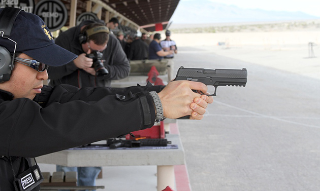 今年5月に開催された静岡ホビーショーで展示されて以来、発売が待ち遠しい東京マルイのガスブローバックガンの次期新製品P320フルサイズ。今回、残念ながら実射テストはできなかったのですが、ディテールから内部構造まで撮影することができました。あらためてP320フルサイズを手にすると完成度の高さが伝わってきます。ちなみに写真は2015年のSHOT Showの前日に開催されたSIG SAUERのレンジデイで初めてP320を撃った時のものです。マニュアルセーフティは付いていませんが、東京マルイのP320フルサイズとほぼ同じ形状をしていました。