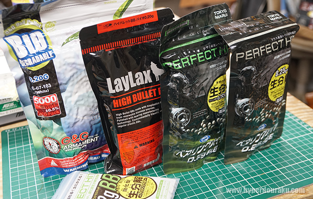 といったメーカーがある。KAI-CHENGはP-Lifeの0.12g弾を作っていることでも知られる。