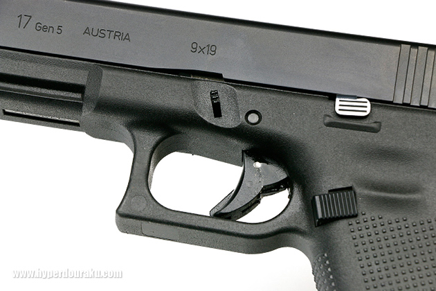 グロックはトリガーガード内側が3挺の中では一番狭く、その結果、トリガー自体も短くなっています。またGen4以降はかなり改善されましたがトリガーの引き味に独特のクセがあり、慣れが必要です。