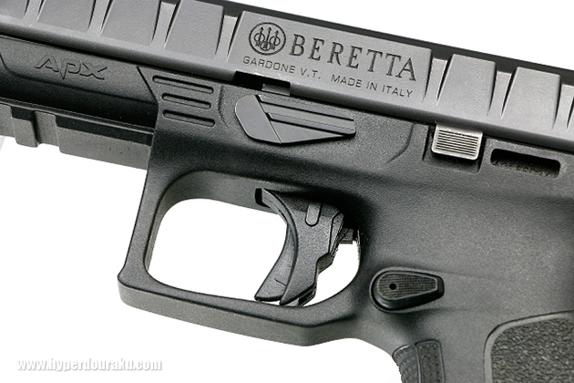 ベレッタ APXはトリガーガード内部スペースが充分に確保され、トリガーも長いです。グロックよりクセのないトリガーではありますが、人によっては形状にやや違和感を覚えるかもしれません。