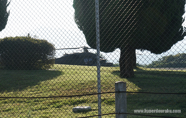 ブラックホークが駐機しているのがチラッと見えた〜。