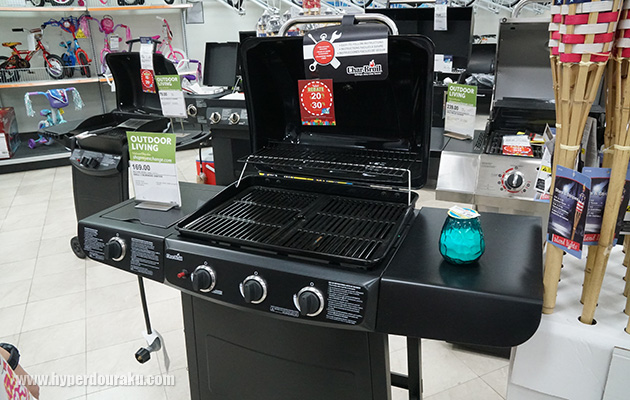 バーベキューコンロが大量に販売。このプロパンガス式のはなんと169ドルという安さ。こんなのを自宅の庭に設置して週末に家族と友達呼んでバーベキューやったら楽しいんだろうなぁ。