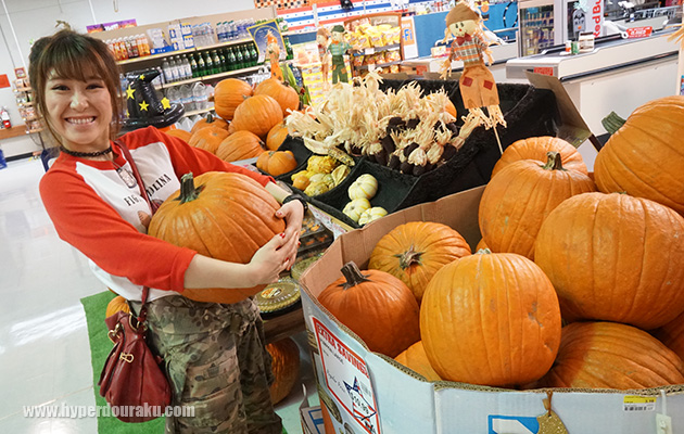 食後に基地から移動して、相模ハウジングエリア(SHA)内にあるスーパーへ。ハロウィンの巨大かぼちゃすげぇ。