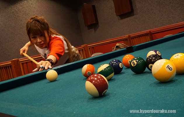 ほぼ初めてビリヤードをプレーするぴっちょ。