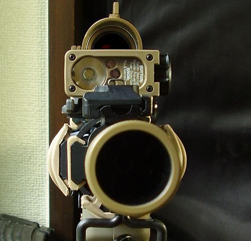 あと面白い所と言えば・・PEQ2みたいでカッコイイからと、サイドワインダーを加工したQDマウントに乗っけたところでしょうか。