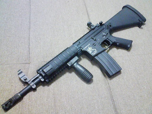 サバゲでは動きまわるのが好きなので、自分なりにその妨げにならない程度の全長に前後共切り詰めたカスタムになります。