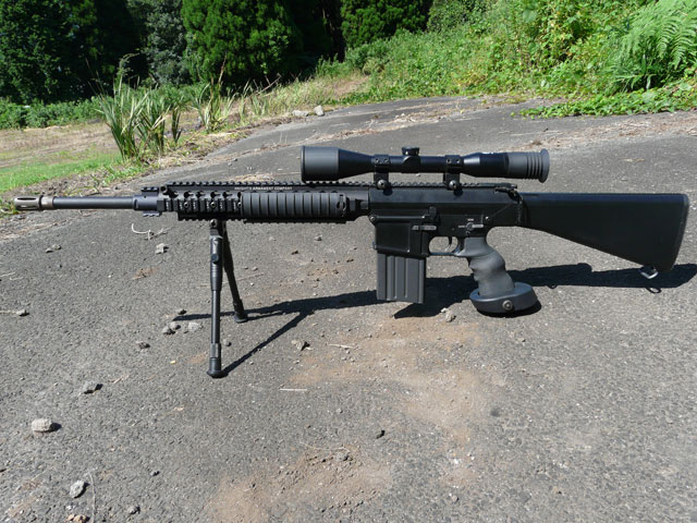■エントリー No.A012 ■投稿タイトル:PSG-110 ■投稿者:STA郎 さん ■コメント 米軍の新規採用狙撃銃であるM110に憧れ、同時にPSG-1の雰囲気にも気に入っていたので、二つを組み合わせた狙撃銃というコンセプトのもとA&K製SR-25をベースに製作しました。