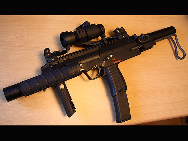 ■エントリー No.B001 ■投稿タイトル:MP7A1-Tank Extended Stock ■投稿者:松戸 さん ■コメント ノーマルの伸縮ストックをあえて変更。 もちろんHOP調整も可能です。 光学サイトを外し、ショートマガジンにするとかなりシンプルに見えます。 ・ストック:G&P製Tank Extended Stock ・ハイダー:P.M.C用 ・フロント&リアサイト:H&K HK416