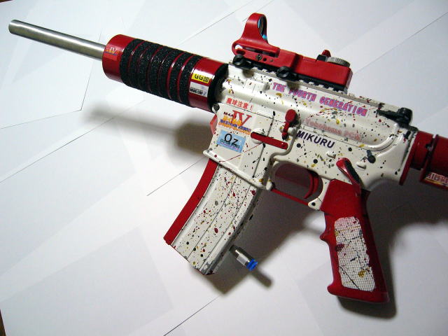 ■エントリー No.C005 ■投稿タイトル:レースガンみくる号Ⅳ ■投稿者:オレンジマン さん ■コメント スピードシューティング09アンリミッテッドに参加する為に制作したキャラクターガン。 見るものを魅了する『圧倒的な存在感』 みんなのハートを鷲掴み。 可愛いながらも本気仕様。 純正パーツ構成で、早く撃つだけなら最速作動。 オプションパーツは、Cモアとみくるちゃんです。