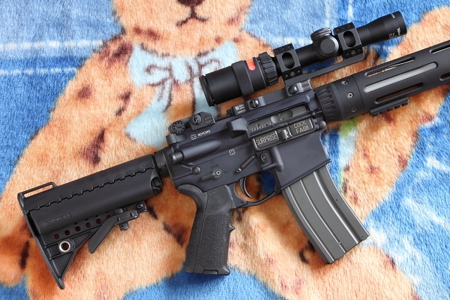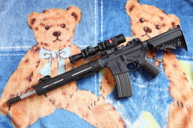 バレルは電動用アルミバレル改造の16.1インチMid-Lengthで、外観もNoveskeの16.1" Recon 5.56mmバレルに準じています。