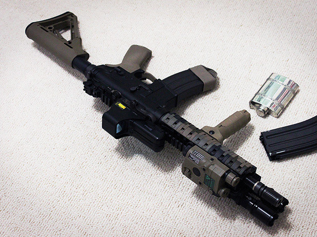 ■エントリー No.A003 ■投稿タイトル:大明神に憧れて。 ■投稿者:Geniway さん ■コメント 初電動ガン、初カスタムの私ですが、頑張ってみました!MAGPUL風カスタムです。 チャームポイントはもちろんコスタ大明神おなじみのLaRue Double Stack Light Mount LT-607です。 ブログの方でもカスタム紹介しております。