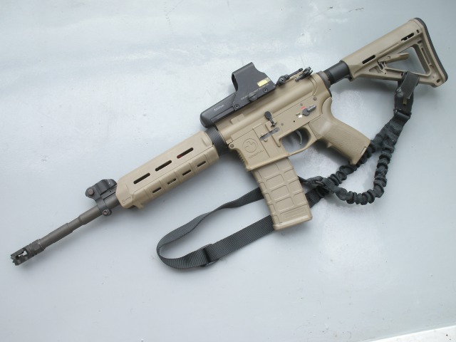 MAGPUL以外の部分ではアウターバレルとフロントのフリップアップサイトがG&P製でフラッシュハイダーはマッドブル・コンペンセイター、ホロサイトはEOtech 552です。