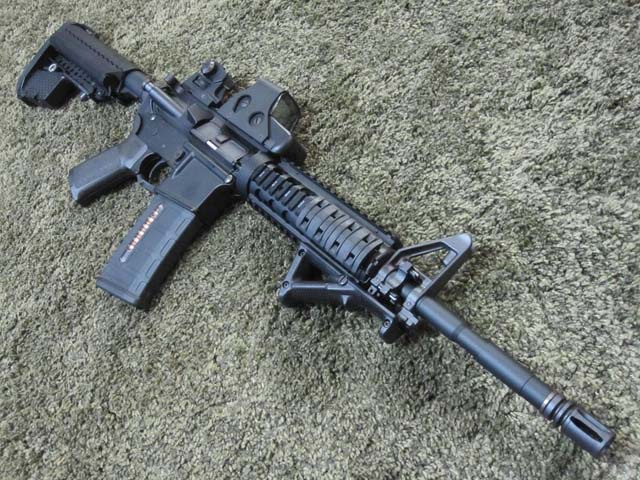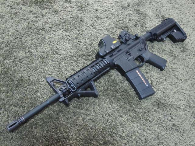 最近流行りのマグプル的構え(コスタ撃ち)を意識し、マグプルAFGとハンドガードを極力前方に配置。色はあえてブラックで統一してます。