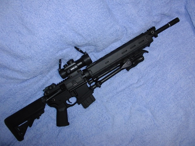 併せて、光学機器の障害対策として、ドットをつけたまま覗けるアイアンサイトも付けてます。