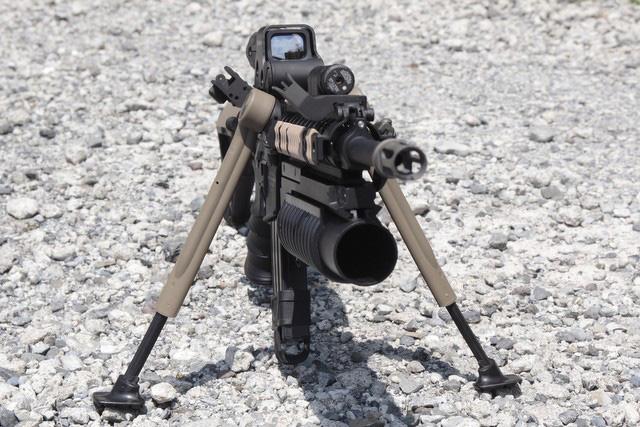 グレネードランチャーは換装が楽なようにあえてRISに直付け。