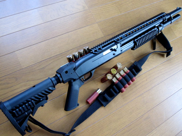 ■投稿タイトル: M3カスタム ■投稿者:RYO ■コメント マルイM3スーパー90をカスタムしました レイルはM4用の下部RISを3個つなげて補強しました シェルポートの削り込みと本体を傷つけないようにと流用加工した接続パーツに大変苦労しました。 その他のパーツはエンターブレイン製です 一応RASのモデルはメサ・タクティカルを参考にしました。
