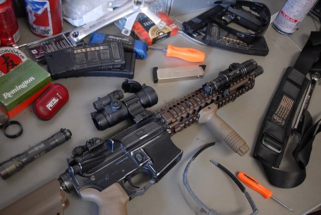 フロントはマッドブル社製のDaniel Defense Mk18 RIS2を使い、アウターバレルはPDI製に交換してフロントを強化しました。