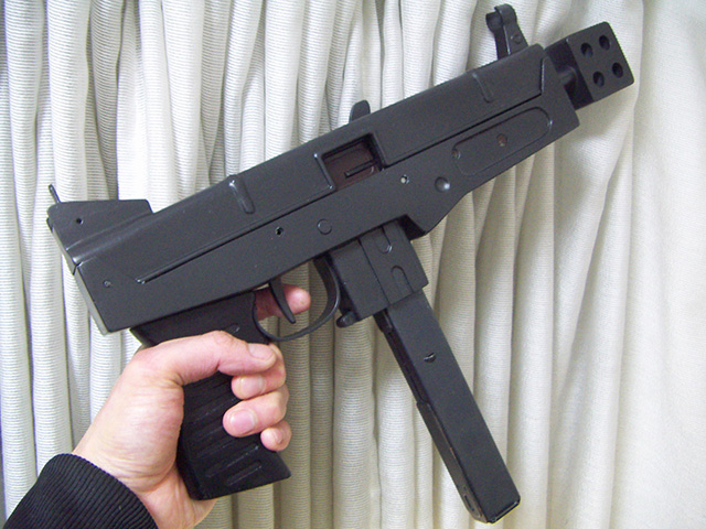 実銃の画像を見た瞬間、「これは内蔵できるかも・・」と思いついてMGCのイングラムを入れ込みました。