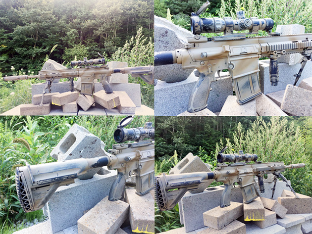 そのままでも十分にリアリティーのあるガスブロバックライフルですが、さらにリアリティーを追及すべく、装備品をプラスし何度も塗装及び加工を施し仕上げた自信作です!!