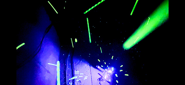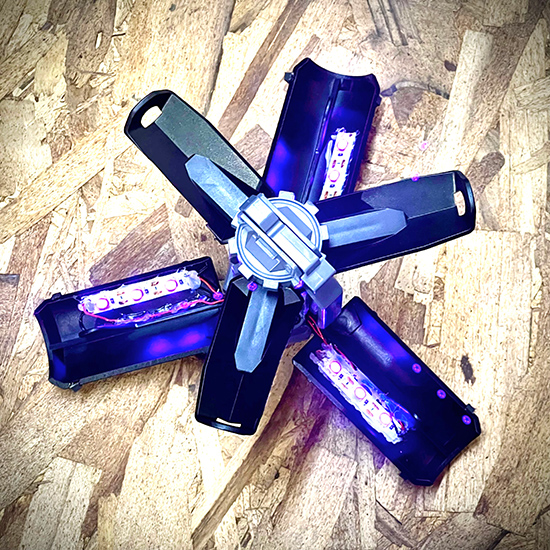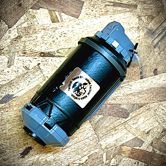スプリンググレネードにUVテープ、小型LiPoを入れて、スイッチを入れるとUVテープが光り蓄光される仕組みです。