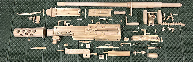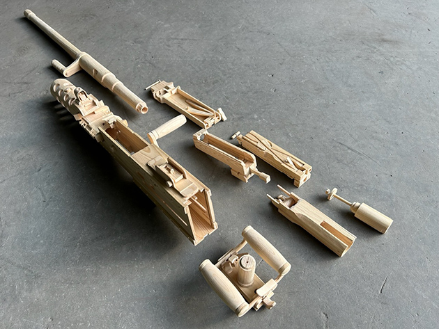 M2重機関銃を木でフルスクラッチしました。 実物と同様の動作・野戦分解・完全分解が可能です。QCBの特徴である交換が容易な銃身も再現しています。 製作過程はX(旧Twitter)にてご覧いただけます。