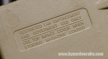 マガジン側面には残弾確認用の窓があるがもちろん電動ガンなのでこれはダミー。しっかりと透明なパーツが填まっていて、オプションで販売しているリアルカートステッカーを貼ればさらにリアルな印象になる。