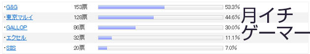 本アンケートは「アンケートツクレール」という外部アプリケーションサービスを利用して実施しました。アンケートシステムの仕様上、最大回答数は1000件となっています。また、同一IPからの連続投稿はできないようなシステムになっていますが、プロキシ経由やケータイ端末など変動するIPからの連続投稿は制御しきれていないと思われます。あくまで参考結果として受け止めてください。