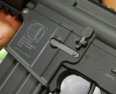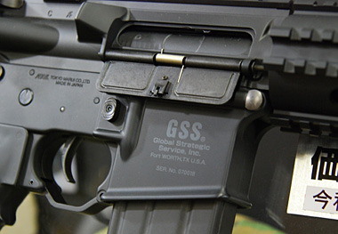 M4-P.M.C.はフレームにシルク印刷が入った。左側面の印刷はGSSのロゴマークとGlobal Strategic Service,Inc.とあり、その下にシリアルナンバーが印刷されている。