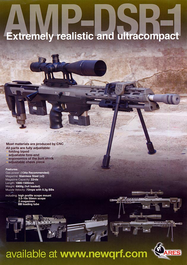 ARES社はこれをCNC削りだしパーツを多用したボルトアクション式のガスガンとして発売する。