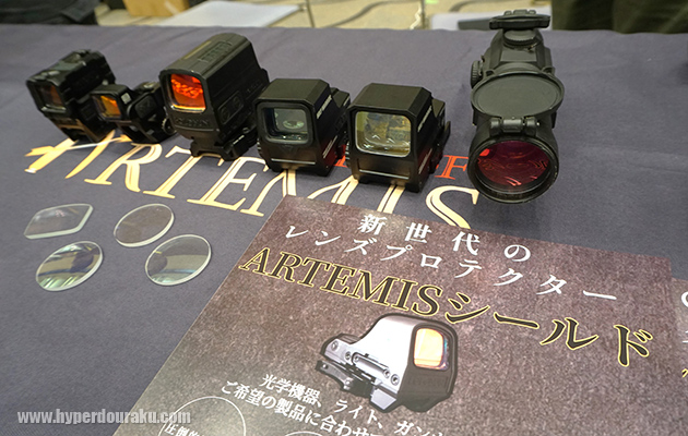 ARTEMIS AIRSOFTで今回注目したのはスコープやダットサイトなどの形状に合わせてオーダーメイドで制作できる防弾レンズの紹介があった。